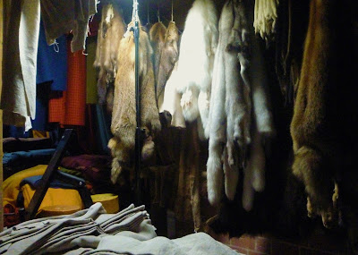 Peles, luxo muito procurado (marta, arminho, raposa, vinham de Novgorod) e tecidos, ficavam numa semi-cave de rés-do-chão, junto com a cutelaria.