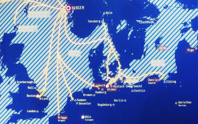 Sem a autoridade de historiador, Gi, parece-me que Bergen, Bruges, Londres, Estocolmo, Aalborg, e Novgorod, nunca fizaeam parte da Liga Hanseática. Simplesmente havia lá entrepostos (kontor) da Liga, que tratavam do negócio import-export, mas sem que a cidade integrasse a Hansa, não sendo portanto obrigada a cumprir os seus regulamentos nem estando sob a sua protecção.