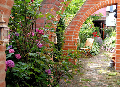 Não é um jardim grande, nem público, nem famoso, é apenas o jardinzito das traseiras do Hotel Haase em Lübeck.