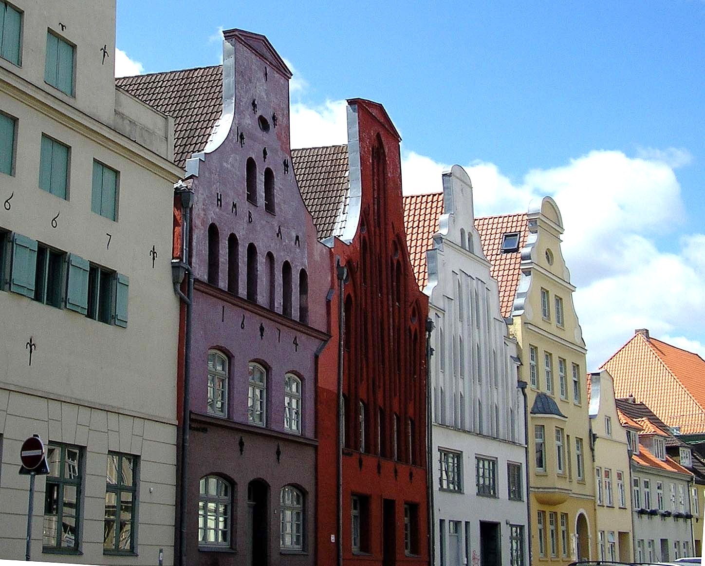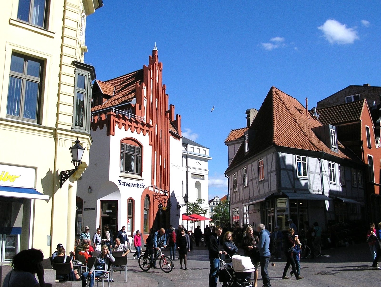 Na rua principal, Lübschestrasse, desfilam frontarias medievo-góticas ou do início da Renascença.