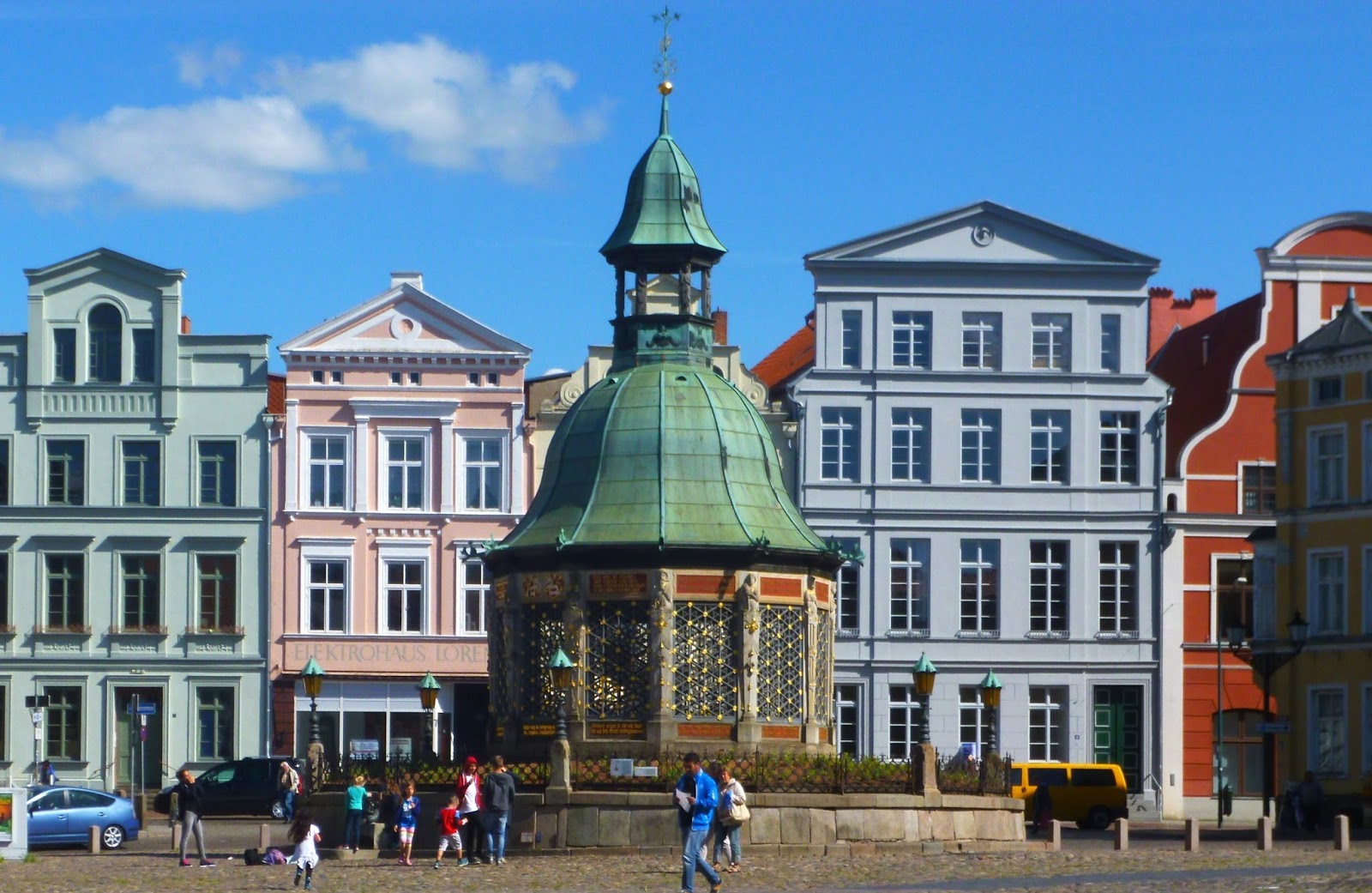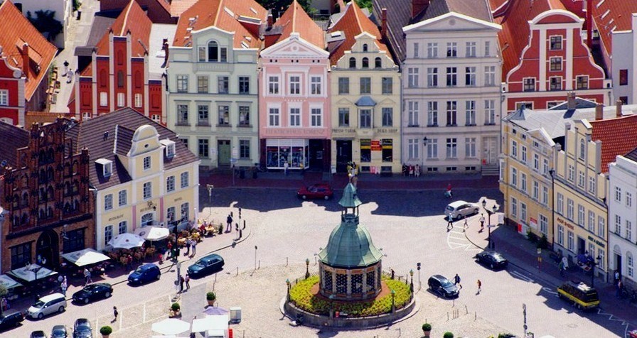 Em volta da vasta Marktplatz alinham-se alguns dos edifícios mais antigos de Wismar.