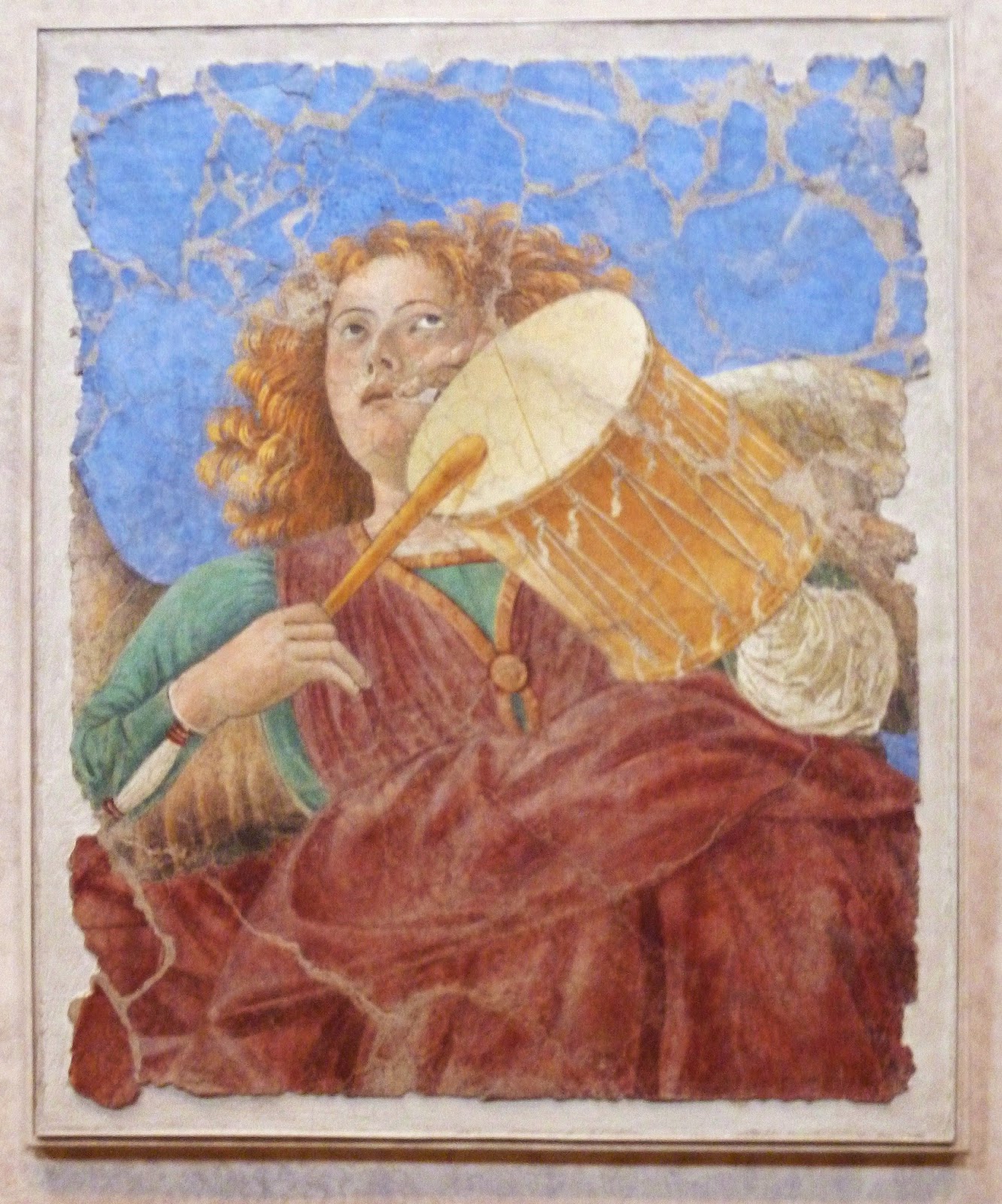 Angelo che suona il tamburo e il flauto