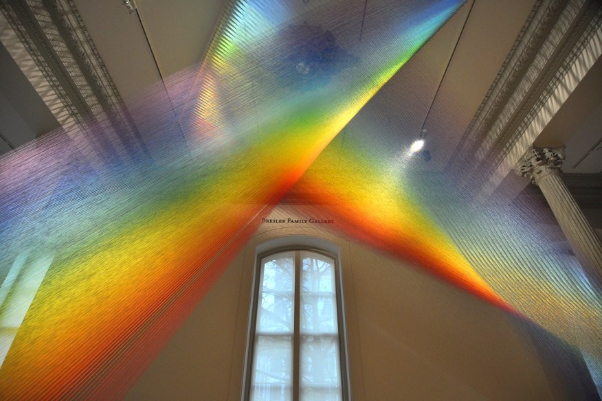 Para agradecer às/aos ilustres visitantes e :) encerrar os festejos, fica aqui este alegre arco-íris tecido em fios suspensos de cor e luz - a instalação Plexus, de Gabriel Dawe, artista plástico nascido no México. Está na galeria Renwick de Washington, e é uma beleza.