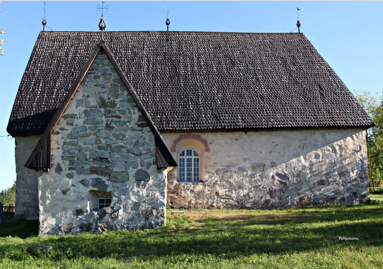 Mas voltemos às igrejas; outra ainda mais antiga, mais surpreendente, existe em Keminmaa, Kemi, 20 km para leste de Tornio; é em pedra, data do século XVI mas parece medieval, e vale pelas pinturas no tecto de madeira.