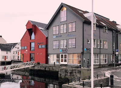 Horne Brygge, sede da empresa responsável pela renovação do centro urbano. Ao mesmo tempo que protege a mais antiga frente marinha, Florø também renova modernizando prédios de menos valia.